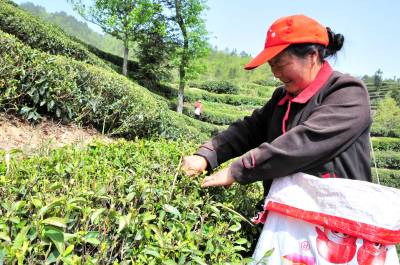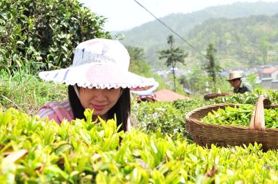 > 农民喜采春茶