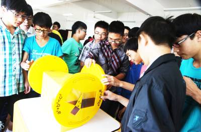 9月22日,中国流动科技馆巴东县一中展馆内,学生在操作科技展品。 当天,中国流动科技馆恩施巡展在巴东启动。本次巡展有声光体验、电磁探秘、运动旋律、数学魅力、健康生活、数字生活等种类。巡展为公益活动,将在恩施各地巡回展出一年。(本报视界网 陈江 摄)