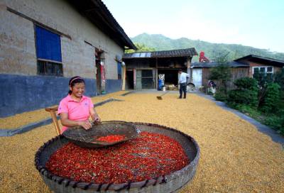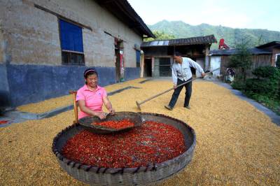 9月21日,竹山县文峰乡中沟村村民正在晾晒玉米和辣椒。自8月份以来,竹山县多处遭遇连低温连阴雨天气,全县水稻、玉米、芝麻、豆类、花生都有不同程度的减产。为将损失降到最低,该县农业部门组织专人、专班,深入田间地头,迅速开展秋粮油生产情况调查调查摸清农情,并号召群众抢晴抓好粮食作物秋收、秋播、补植。(程平) 地址:竹山县林业局 电话:13872773800