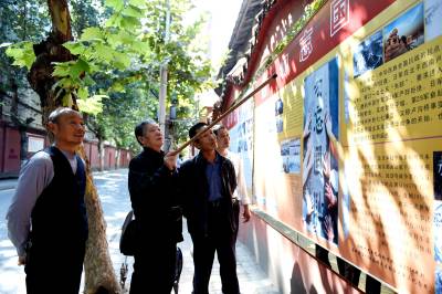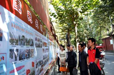 2014年9月22日,一位经历过抗日战争的刁姓老人和其它群众一起在湖北省南漳县城关镇白凤路观看国防教育宣传栏,并为大家讲解国防历史。白凤路是南漳水镜庄风景区和水镜公园的入口路,人流量大。“十一”前夕,南漳县国防动员委员会、县委宣传部、人武部、珍珠液酒业公司等单位和企业,共同制作了“加强国防教育、筑牢国防观念”宣传栏,共设“勿忘国耻、艰辛探索”等六大内容板块,系统讲述了国防由弱到强的艰辛历程。
