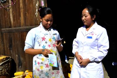 9月22日,在恩施市红土乡红土溪村茅田组,医务人员正在与孕妇进行孕期保健知识宣传。