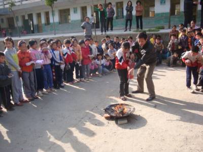 山区小学学校开展火灾逃生处置应对突发事件演练