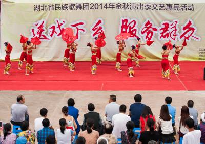 金秋时节,恩施土家族苗族自治州各族儿女又迎来了一个丰收年!全州有关文化单位及社会文化工作者,纷纷准备了丰富多彩的歌舞,把丰盛的精神文化大餐送到村村寨寨,与村民共庆丰收,共迎祖国65周年华诞。