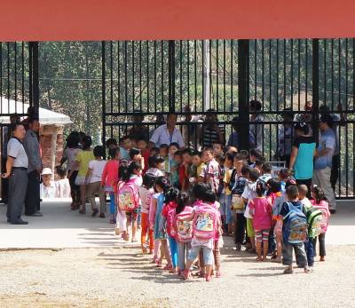 9月23日中午,放学的学生们正排队有序的走出白浪镇中学大门,家长们都在门外等候来接孩子回家,这是郧县白浪镇加强对学挍安全管理的新举措,同时在孩子上学和放学的高峰时段,派出所干警,分管安全的副校长全部到位,协助保安分流学生和交通管制,让学生平安上学和放学。 视界网周家山 摄