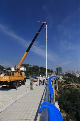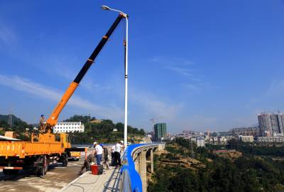 9月23日,国网秭归县供电公司施工人员正忙着在陈家冲大桥上架设路灯,为三峡库区秭归县城出口一级公路南段的正式通车做最后冲刺。
