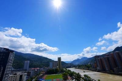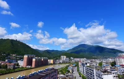 连日阴雨过后,旷工许久的太阳终于露出笑脸。 山城保康上空,浮云朵朵衬出美丽清透的蓝天,如诗如画。 (视界网 陈泉霖 摄)
