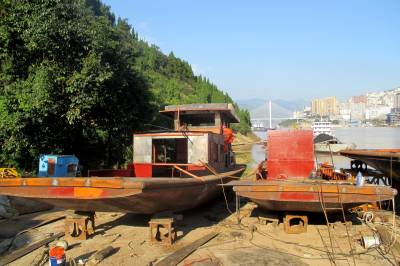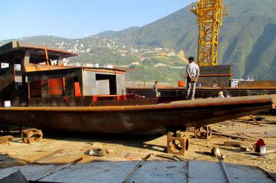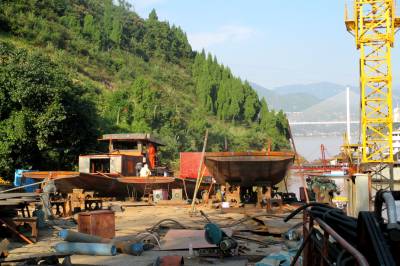 9月23日,巴东县官渡口镇民营企业——鑫盛船务公司的造船厂一片繁忙景象,工人们正在打造农渡船。