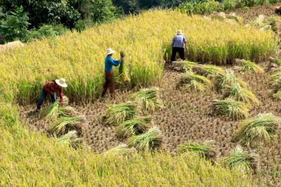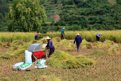 秋分农事忙 9月23日,巴东县溪丘湾乡下庄坡村5组的村民在稻田里抢收稻谷。 当日是二十四节气中的“秋分”,三峡库区巴东县农民抓紧农时抢收水稻、玉米,耕翻土地,及时播种冬小麦,田间地头一派繁忙景象。本报视界网:梁斌 摄(巴东县委宣传部 13343557688)