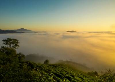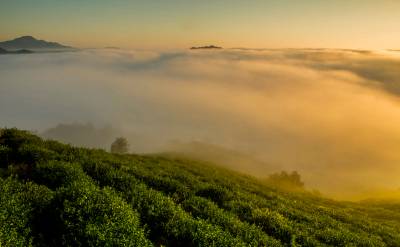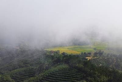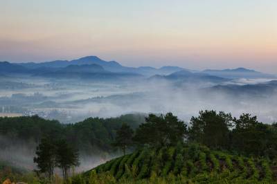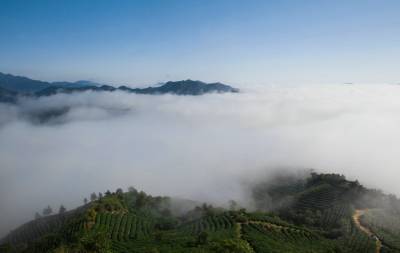 秋天的清晨,登高望远,来到了三里城茶园,云雾缭绕,仿佛置身在云海中,远处的山峦近在眼前,一片片绿茶如蛟龙在云海里游走,如梦如幻。