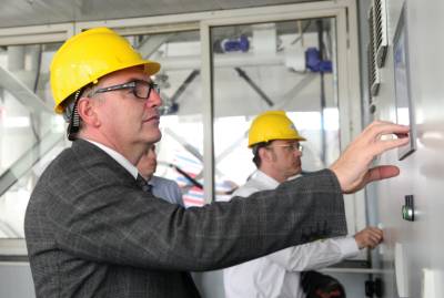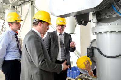 德国一流粉体技术设备生产商Alpine机械设备公司技术人员正在湖北冯家山硅纤有限公司查看气流粉粹机生产情况。