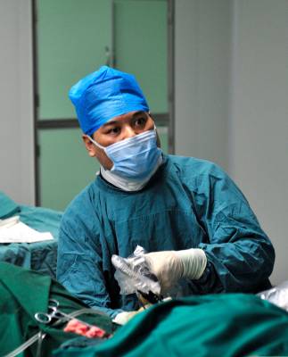 鲁成军,湖南省宁远县人,湖北省秭归县人民医院泌尿外科的一名医生。1989年大学毕业后,作为支援湖北贫困山区的医疗技术人才被引进到湖北省秭归县人民医院工作。扎根山区25年来,他全身心扑在工作岗位上,刻苦钻研医术,千方百计为患者解除病痛,平均每天要做3-4台手术,为20多名住院病人诊治疾病,经常牺牲休息时间在科室加班到深夜。患者半夜病情有变化了,他顾不上生病在家的老婆和急需照料年仅3岁的女儿,匆忙结束假期自费包车50多公里连夜从家中赶回医院。因长期低头手术,鲁成军颈椎间盘严重突出,同事和家人多次催促他去治疗,他总是忙于工作一推再推,自己弄了个颈托戴上,继续坚持在工作岗位。(视界网 王家满摄)