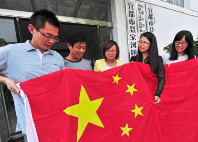 国旗更新迎国庆 9月24日,湖北省宜都市聂家河镇的机关工作人员准备更新崭新的国旗。当天,该镇统一在镇政府办公大楼和镇属机关单位及主要街道上,将旧的国旗全部进行了更换,以崭新的镇容和风貌喜迎建国65周年的到来。 曹礼达摄