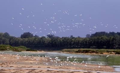 罗田县城过去污染严重,群众呼声很高。近年来,县委、县政府加大废气、废水、废物等污染治理,取得了明显好转。如今义水河水逐步变清了,鸟类变多了。图为义水河鸟雀林路段白鹤飞翔的镜头。