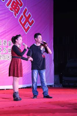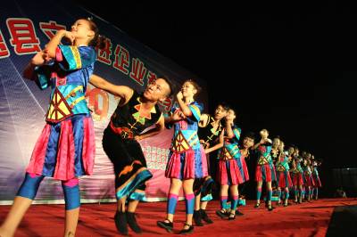 2014年9月24日晚,恩施土家族苗族自治州宣恩县非物质文化遗产传承展演中心演职人员在椒园生态产业园区演出。