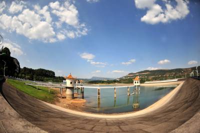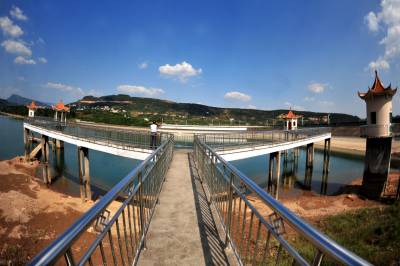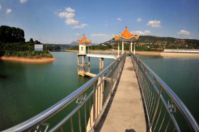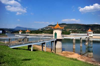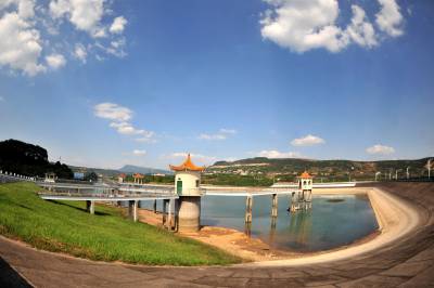2014年9月24日,宜昌市夷陵区小溪塔街道官庄水库在蓝天白云映耀下展现大美生态乡村风景。官庄水库位于夷陵区小溪塔街道官庄村境内,系长江北岸一级支流柏临河流域上一座中型水库,距宜昌主城区20公里。官庄水库承雨面积31平方公里,是以供水、灌溉为主,兼顾防洪、养殖综合效益的中型水利枢纽工程,水库最大坝高38.8米,总库容1560万立方米,担负着宜昌市城区百万人的生活供水任务,社会效益显著。官庄水库周围自然环境优美,生态环境良好,森林覆盖面积达60%,是城郊休闲的天然氧吧,形成了一片宁静雅致的澄澈美景。 视界网 张国荣 摄