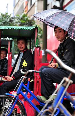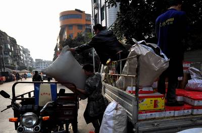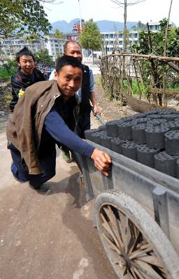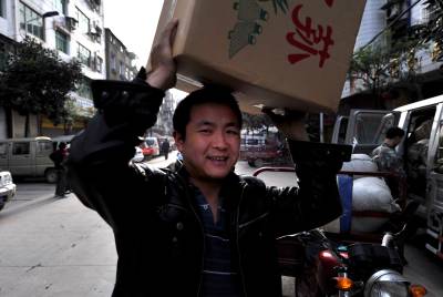 4月28日,几位农民迎着朝阳在宣恩县珠山镇的一条街道上搬运货运。因为水电、道路等重点工程建设需要,他们的土地被征用了,成了无地的农民。无论是大城市还是小城镇,都生活着一批因为支持工程建设而”失地”的农民,他们大多来到城镇,干着服务城市生活的的事儿,成为”城市里的农民”。