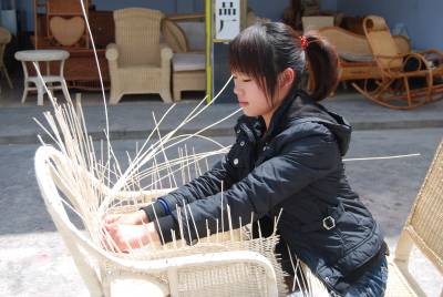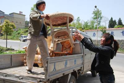 (签约摄影师汪盛华)4月27日,宣恩县的年轻小伙吕纪明将客户定制的藤制家具销售给客户(图二)。据介绍,吕纪明1997年—1998年在深圳一家藤制品企业打工时,学得藤制品加工工艺;后来回到家乡,于2009年6月开始在椒园集镇与兄弟吕纪恩联办起自己的藤制品家具制作厂。兄弟俩从印尼进口优质藤,用粗藤制成框架,再用细藤编织,经过备料—做架子—编织—打磨—喷油抛光等环节,制作出藤椅(图一)、秋千(图三)、餐桌(图四)等20多种藤制品。因藤制厂紧邻209国道,路过的客人有的随即下车看看,有的买一两件试用。由于藤制品具有弯曲度好、色质好、耐用、不黑不发霉、不起虫、低公害等综合特色,藤制品的名气越来越大,恩施州、宜昌、武汉、重庆、黔江等地客户纷纷前来定制,藤制厂现主要生产订单藤制品,月平销售200件订单藤制品家具,经济效益可观。