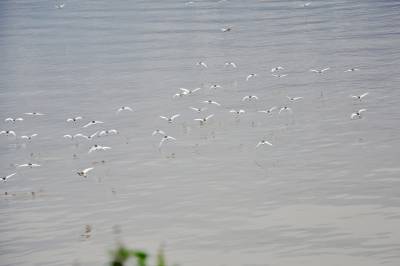 25日,一群白鹭在巴东县官渡口镇太矶头段岸边湿地翔舞、戏水。 近几年来,该县政府积极争取国家和地方财政配套资金,在县城及库区各乡镇修建了垃圾、污水处理厂,保证了长江三峡库区巴东段水质安全,岸边湿地生态环境得到优化,为鸟儿提供了良好的栖息场所。时下,三峡工程第7年开展175米试验性蓄水,近1000只白鹭选择库区岸边湿地栖息。(本报视界网 穆世祝 摄)15335850858