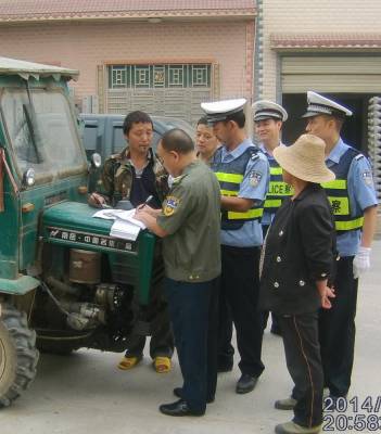 为遏制农机道路交通违法行为,增强广大农机手的安全意识,确保全县农机安全生产形势稳定,9月初,来凤县农业局、公安局、安全生产监督管理局出台了《开展农机道路安全联合执法工作实施方案》。该方案规定,每年在春耕、三夏、三秋等时节由农业部门牵头组织一次农机道路安全联合执法,每次联合执法不得少于一周。在执法过程中,公安交警与农机执法人员加强协调与配合,公安交警部门对拖拉机及驾驶人的违法违章行为及时做出纠正,并依法进行相应处罚;农机部门依法补办牌证、年检等相关手续,认真记录执法台账。力争通过警监联合行动,加大农机安全隐患查处力度,防止较大农机事故发生,确保农机道路交通安全。