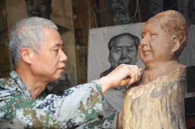 本报讯(通讯员 黄德望)9月26日,安陆市府城办事处68岁的民间艺人陈代胜,在简陋的房间精心打磨他的木雕作品“毛主席”,迎接3个月后“毛泽东诞辰120周年纪念日”的到来。陈老自幼痴迷绘画、雕塑艺术,并自学成才。2008年创作的《中国根》走进了北京奥运展馆,其书画、根艺作品多次摘得国际国内美展大奖,其业绩被载入人民日报社所编《中国专家人才库》第五卷。
