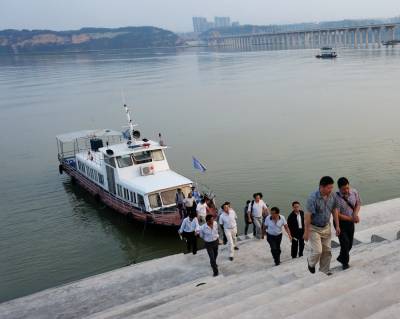 郧阳港新码头迎来第一批观江游客