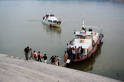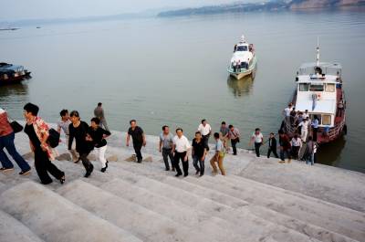 9月26日,一批游人从郧县复建的郧阳港综合新码头登上轮船观看汉江水位上涨后的江景。郧阳港新码头是南水北调中线工程重要的复建项目,占地98亩,泊位4个,靠泊能力500吨,年货物吞吐量60万吨,客运旅游泊位1个,20个停靠点,靠泊能力100个客位,年客运吞吐量30万人次。 视界网周家山 摄