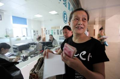 9月26日,在孝感市中心医院住院结算窗口,广场街道居民严巧仙持社保“一卡通”为丈夫办理出院结算手续,当场就领到4500多元的报销款,严巧仙连声说:“一卡通方便,真方便”。 签约摄影师 晏美华 摄