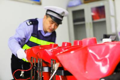 9月26日,随着先后9辆机动车上非法安装的高音喇叭被民警依法拆除,秭归县公安局交警大队一天之内将9张商家自卖自夸的“嘴”无情封堵。面对此种嗓音扰民、犯下众怒的流动喇叭,秭归县公安局交警大队展开“拆喇叭——还清静于民”的整治行动,赢得民心民意。 图为9月26日,秭归县公安局交警大队民警登记封存被依法拆除、收缴的高音喇叭。 图、文:吴令剑 电话:18972594962 地址:秭归县公安局政工室 邮编:443600