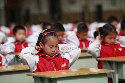 迎世博爱眼睛4月28日,小学生正在参加眼保健操比赛。当日,湖北宜昌市西陵区东山小学开展”迎世博、爱眼睛”眼保健操比赛。1300多名小学生分别参加了眼保健操展示,以此引导学生保护视力,喜迎上海世博会到来。视界网黄翔摄