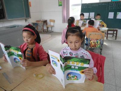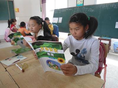 26日,郧县五峰乡界牌完全小学学生在阅读《生命安全教育》。今秋季开学,该县将生命安全教育纳入课程计划,给学生发放《生命安全教育》,每周教学一课时,通过开主题班会、办安全板报、逃生演练、生命教育、安全器材使用等多种形式上好生命安全教育课。 (视界网 周学山)
