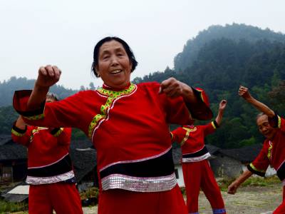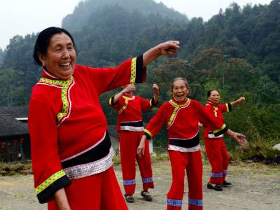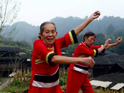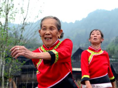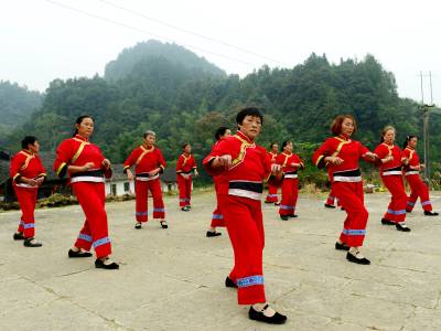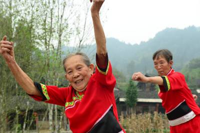 留守老人秀健康 9月27日,来凤县革勒车镇大地龙村的老年妇女们身着节日盛装,在“农村幸福院”里跳摆手舞、秀健康身体。国庆、重阳节来临之际,该院的23位留守老人自费购买民族服饰,利用劳动之余排练文艺节目,准备在“国庆、重阳文艺晚会”上一显身手。78岁的姚子云老人除了每天步行1公里山路参加节目排练外,家里还养了5头大肥猪和30只鸭子,浑身有使不完的劲。她缝人便说:现在政策好,老年人更要身体好。 本报视界网 姚丙然、姚双云 来凤县革勒车镇文化服务中心 电话:13997799385