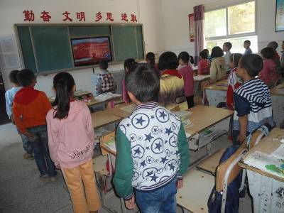 29日,郧县五峰乡界牌完全小学学生在中国文明网上签名寄语、向国旗敬礼。在祖国华诞65周年到来之际,该县中小学校组织4万名学生登录中国文明网或其他链接网站,积极参加“向国旗敬礼、做有道德的人”网上签名寄语活动,表达庆祝祖国诞辰、共筑中国梦的美好心声。 (视界网 周学山)