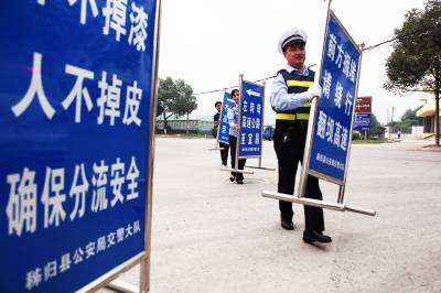 秭归县警方为三峡坝区交通分流严阵以待
