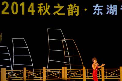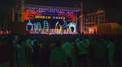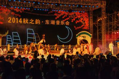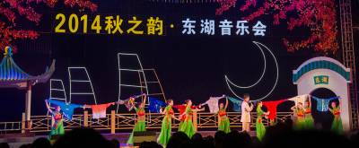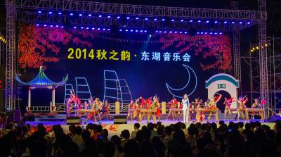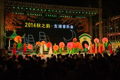 在国庆到来之际,由湖北省文化厅等单位主办的庆国庆65周年,2014年秋之韵-东湖音乐会闭幕式暨全省市优秀原创作品音乐会,在9月27日晚在东湖之畔长天楼前汇演。这次惠民演出,精彩地表演,受到广大市民的热烈欢迎。