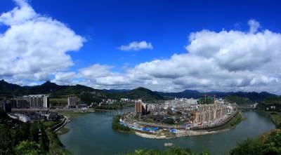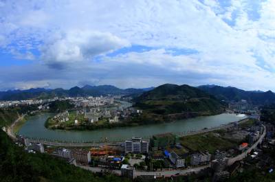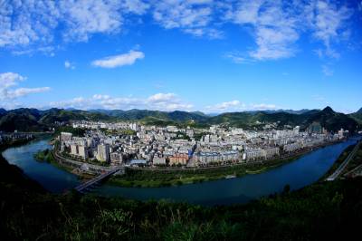 金秋风景美如画 9月29日,雨过初晴。天蓝、地绿,碧绿的堵河水如一条玉带,环绕着三面环水的竹山县城,呈现出一派风景如画的自然景象。(视界网 章磊 摄)