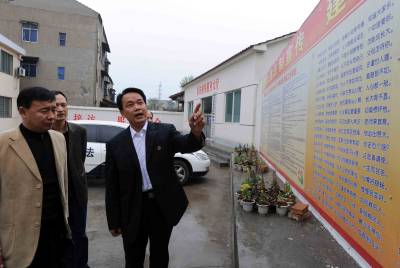 昨日,”湖北省优秀司法所长”杨世明正在给人们朗读他新编的《十劝歌》,他维护社会安定和谐的词语编成诗句,印刷成宣传单发给村民,并贴上宣传墙广为告之,他所在的荆门市东宝区牌楼镇由”上访大镇”一举成为全国表彰的”平安乡镇”,先后获得全国”先进司法所”、”模范人民调解委员会”和”省级规范化司法所”等多项光荣称号。(记者杨平摄)