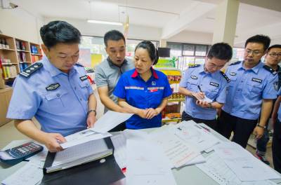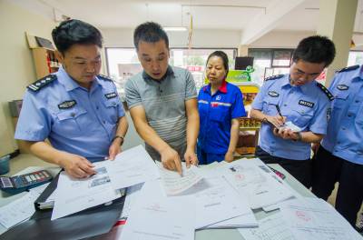 10月1日,公安干警在云梦县楚王城大道一加油站突击检查散装汽油购销台账实名登记情况。当日,云梦县公安局干警放弃休息,坚守岗位,对辖区车站、商场、石油公司等重点内保单位的安全隐患进行突查,对存在的问题当场责令改正,确保国庆65周年平安。 (视界网 王云清 摄)