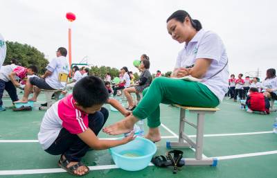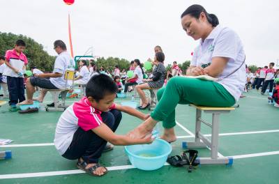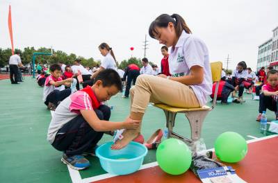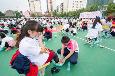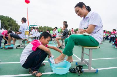 弘扬传统孝道,传递“孝”文化。2014年9月30日下午,孝感市义工联、孝南区第二实验小学联合举办了一场“用爱感恩,为父母洗一次脚”的活动,让孩子感知父母的辛苦、懂得百善孝为先的道理、从最小的事情做起,去爱护父母、孝顺长辈。活动现场,主持人近一个小时动情的感恩演讲,让300多名孩子与父母或者爷爷、奶奶都眼含热泪,享受了一场孝心和感恩的盛宴。 (视界网 王云清 摄)