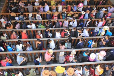 国庆黄金周第二日恩施大峡谷游客接待单日破1.5万人次创历史 10月2日,“十一”国庆黄金周第二日,恩施大峡谷景区迎来首个旅游高峰。截至当日15时30分,该景区售出门票13000多张,已累计接待游客15238人,同比增长21%,创该景区国庆黄金周第二日单日接待量历史。 图一为游客步行至恩施大峡谷景区游客中心”购票“。 图二为游客”挤爆“恩施大峡谷景区交通车等候区。 (视界网 刘伦 摄 恩施市新闻中心 18671880447)