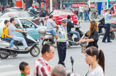 10月1日,一名交警站在川流不息的人流中指挥交通,面对“中国式过马路”显得一筹莫展。当日,笔者在云梦县的一个十字路口观察了15分钟,发现路口的红绿灯基本上形同虚设,汽车、摩托车、电动车、自行车、行人任意穿行,大多数被劝阻的人都表现得满不在乎,交通拥堵堪比春节。当日,云梦县公安局干警全员出动,此路口除了3个交警执勤外,还增派了3名机关警官协助疏堵,仍然无济于事。遵守交通规则应从你我做起,“中国式过马路”别让交警唱“独角戏”。 (视界网 王云清 摄)