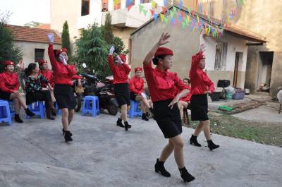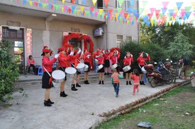 10月2日,汉川市汈汊湖养殖场汈汊村飘荡着欢快的歌声,村民以感恩的心态,用绚丽的舞步,祝贺新中国成立65周年,感恩祖国,祝福祖国。 签约摄影师 邹开建 摄 通联:汉川市卫生计生局 电话:13197382491