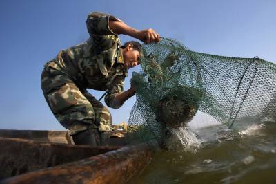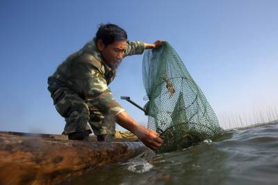 10月4日,咸宁市咸安区向阳湖镇水产养殖专业户刘召荣正在斧头湖中捕捞螃蟹。刘召荣承包了3500亩水面用于养螃蟹,今年捕捞的8000斤螃蟹才出水就销售一空,销售收入40万元。连日来,咸安区斧头湖水产养殖区迎来螃蟹捕捞上市的高峰期,来自武汉、河南、湖南等地的客商将捕捞上来的110多万斤螃蟹抢购一空。据咸安区水产局介绍,今年因为气候温和、水量充足,螃蟹的产量比往年更高,而且成熟上市的时间正好是国庆长假,处于销费的高峰期,预计今年当地螃蟹销售收入将有望达到2100万元,较去年销售收入增长40%,成为当地水产养殖户今年收入的一大增长点。