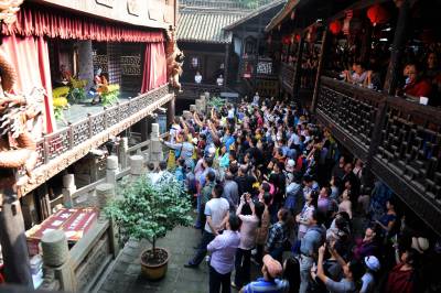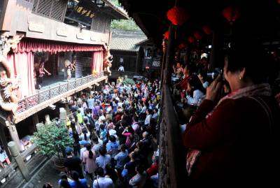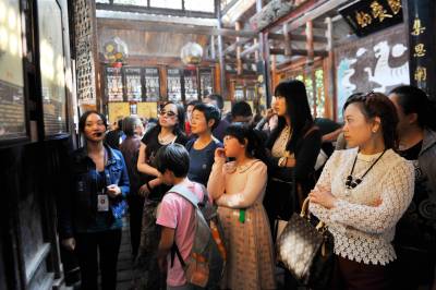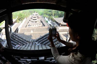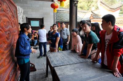 10月5日,游人在湖北恩施土司城游玩,体验土家文化之旅。