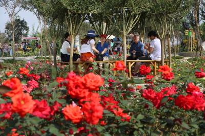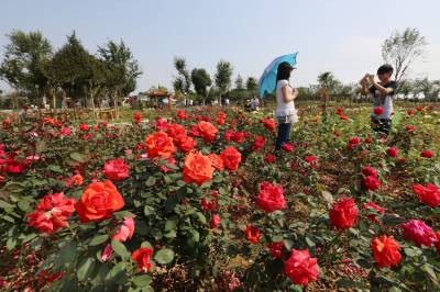 国庆长假新洲生态游火爆 5日,游人在武汉市新洲区仓埠海帆紫薇都市田园游玩。仓埠街是武汉重点赏花旅游线路之一,沿109省道两旁20公里“桂花长廊”有花卉苗木园区38个,种植紫薇、桂花等苗木3万余亩,国庆长假每天吸引5000余市民游园赏花。 视界网 邱新明 摄 单位及地址:武汉市新洲区委宣传部 电话:13207146140 邮编:430400