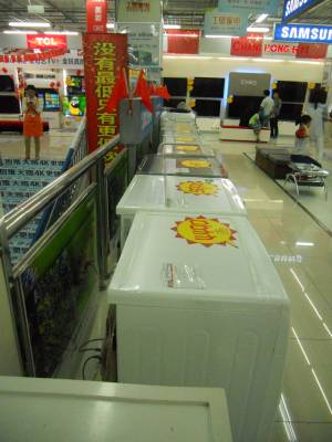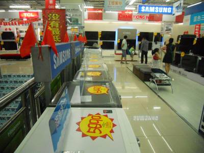 10月5日晚,汉川市开发区家电商城里一面面鲜红的国旗相映成辉,使得商场处处洋溢着节日的喜庆气氛,推动了“十一”黄金周家电市场的销售高峰。 签约摄影师 邹开建 摄 通联:汉川市卫生计生局 电话:13197382491 邮编:431600