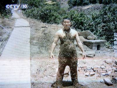 秭归农民“赤身穿蜂衣”绝活再上央视