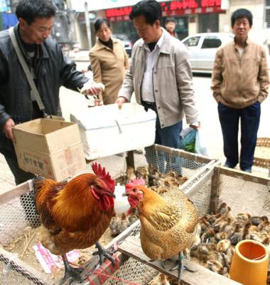 ”青脚麻鸡,长大了就这个样啊!”昨日,荆城北门鸡苗市场上来自钟祥市冷水镇官坡村4组养鸡大户彭林生的吆喝声及其面前一对高大、漂亮的”鸡夫妻”吸人眼球,不少进城农民纷纷选购他筐里的鸡苗。彭林生说,他每年养2万只鸡,销售鸡苗5万只,用这种方式促销,有”哑巴卖刀”的功效,不用多说什么,以实际结果示人就能赢得顾客,他如此销售了几年鸡苗,收益很好。本报视界网许中华摄