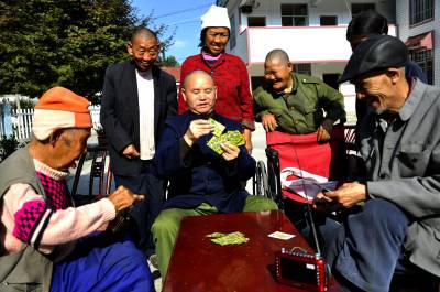 欢声笑语度晚年 10月6日,在恩施市红土乡福利院里,几位院民正在玩扑克下象棋。 近几年来,该乡注重农村福利院内的文化建设,新建了图书室、娱乐室,添制了锣鼓等乐器。设置扑克、象棋等适合老人参与的娱乐项目,有组织地进行自娱自乐,发挥院民特长,动员所有院民自愿参加,丰富院民精神文化生活,使院民们在欢声笑语中安度晚年。(视界网彭绍峰吴先怀摄)