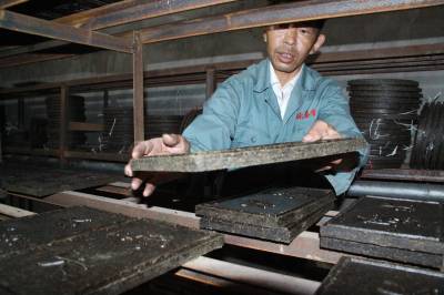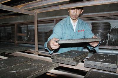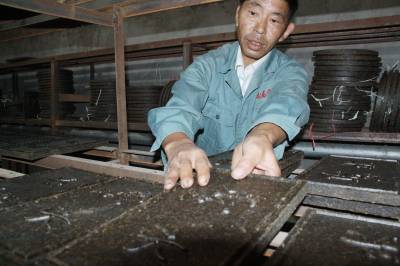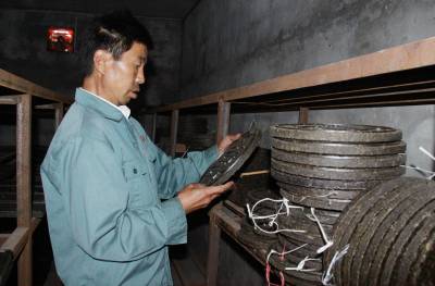 10月7日上午,在竹山县宝丰镇圣水茶场有限责任公司九里岗总部的砖茶加工烘干车间,制茶技术工人正在察看砖茶质量。为解决夏秋茶开发利用率低等问题,该公司发挥企业自身人才优势开发出在新疆、内蒙等地区非常俏销的砖茶,仅此一项每亩茶园可增收3000元左右。砖茶工艺品集绿色、环保、健康、观赏于一体,因此很快会成为家装饰品的新宠,进入平常人家。