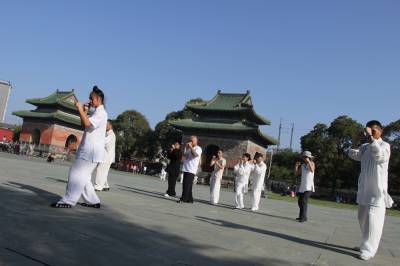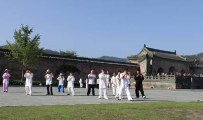 武当山习武的老外 10月6日,数十名外国的武术爱好者在武当山玉虚宫练习武术。“十•一”期间,每天都有一些老外在此习武,成为景区的一道别致风景。据了解,近年来,到武当山学武术的外国人逐年增加,先后有美国、英国、日本、加拿大等50多个国家的数万名武术爱好者来武当山修习过武当武术。目前,在武当山注册的“洋弟子”达到2万多人。视界网 钱芹摄 详细通联:丹江口职业技术学校办公室:钱芹 邮政:442708 手机:13477990812